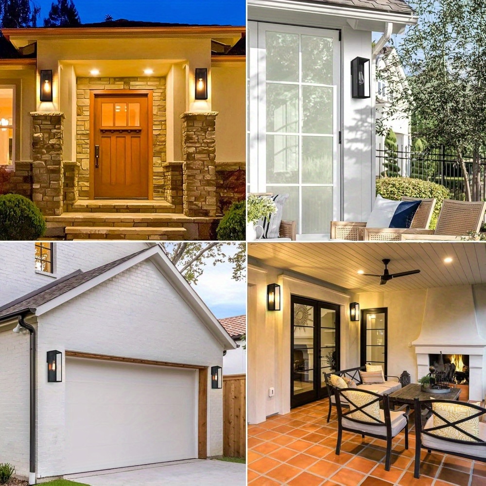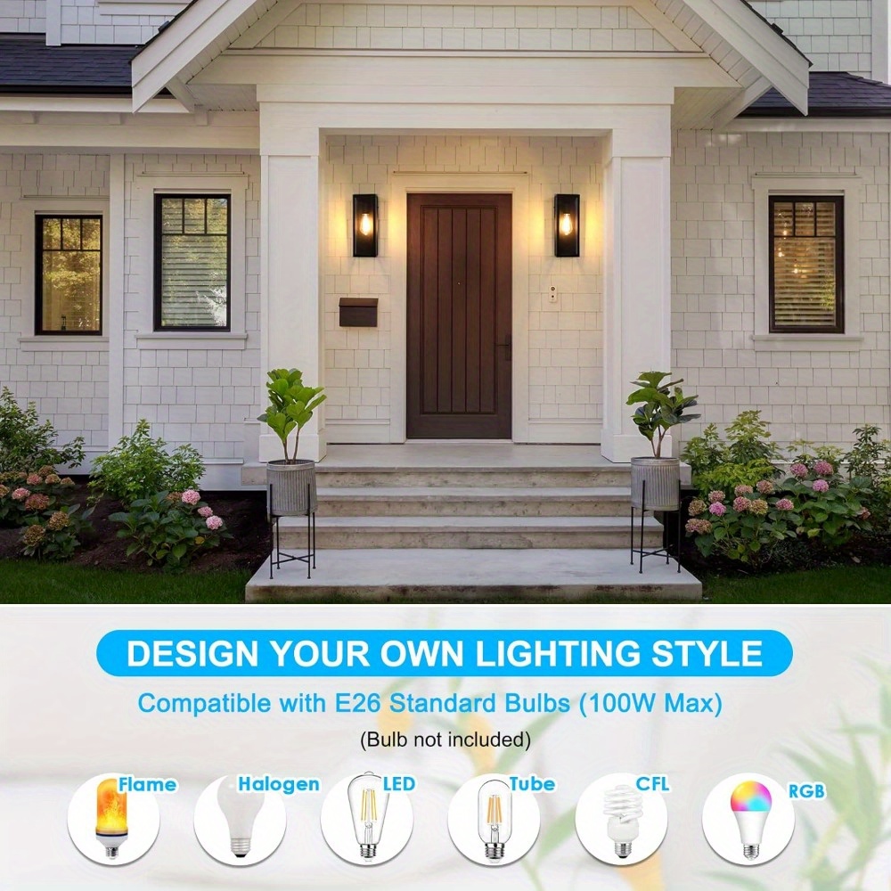 2-Pack Outdoor Wall Lanterns, Exterior Waterproof Wall Sconce with Glass Shades, Matte Black Porch Lights Wall Mounted, Anti-Rust E26 Modern Wall Lighting Fixtures for Patio Garage Entryway Front Door